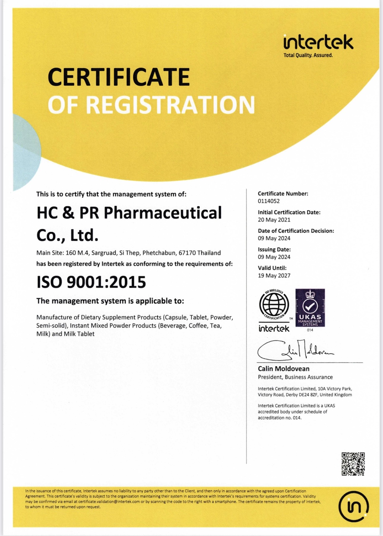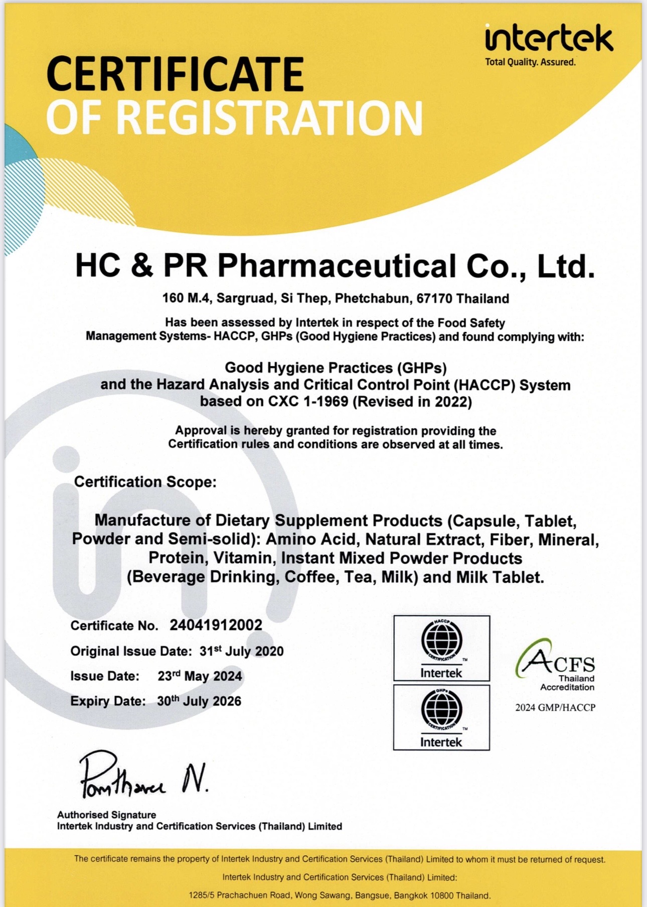 Food Safety Standard Certificates (GHPs and HACCP) certified by Intertek